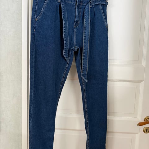 Farkut olivat hetken päällä ja pesin nurinpäin. Koko on L. Olikin itselle väärä koko. Korkeavyötäröinen malli. Mittoja: haara-vyötärö 30cm,vyötärö 75cm,vyötärö venytettynä 90cm. Joustava kangas. Niittipallukat ovat läpi kankaan. Postitse tai toridiili.