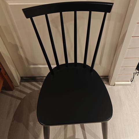 Kaunis valk.pinnatuoli. Tukeva, painava. Koivua luulisin. Maali muuten hyvä,paitsi istuinosassa pientä kupruilua, näkyy kuvassa.