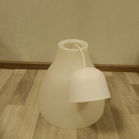 Ikean kokoontaitettava kattolampun varjostin. Alkuperäispakkauksessa, käyttämätön. Korkeus koottuna 25cm.Varjostimen alareunan leveys valmiina 29cm. Nouto tai postitus.