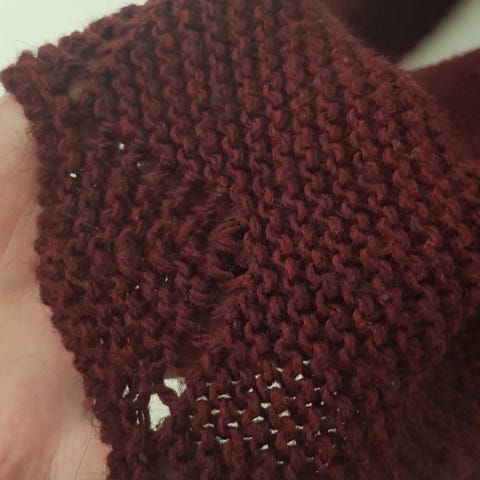 Punainen neule kuvioilla.Koko XL,joustaa.30%villaa.Hinta 10€+ lähetys.
