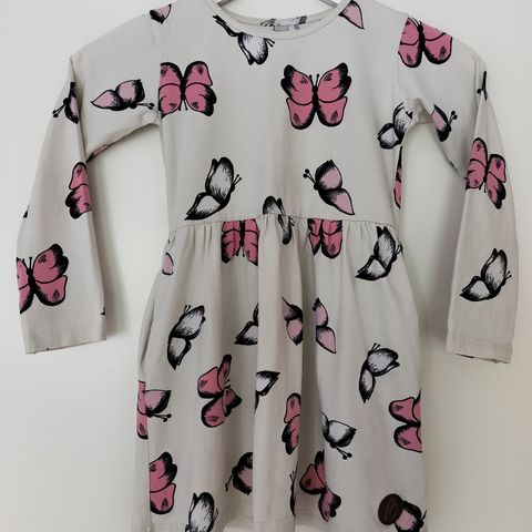 Myydään Blaa perhosmekko kokoa 110/116 cm. Ollut yhden lapsen käytössä. Laadukas mekko jossa myös taskut. Mekko on ehyt ja kangas on hyvässä kunnossa mutta pientä tummaa tahraa löytyy jonkin verran kts. kuvat