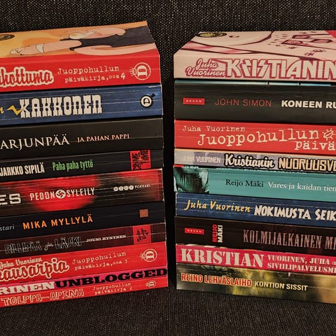 Pokkareita ja seassa pari kovakantistakin kirjaa.