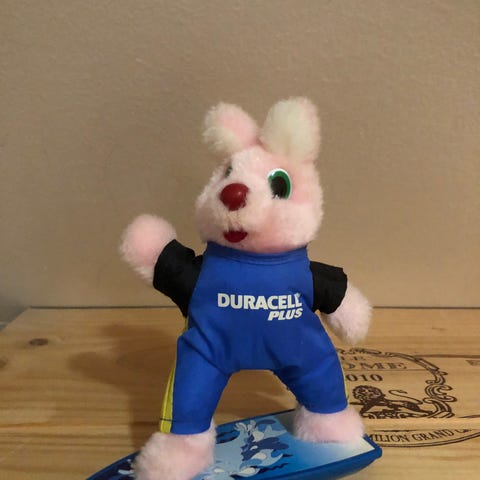 Jalkapallon Ranskan World Cup 98 teemainen Duracell pupu. Korkeus 18 cm.