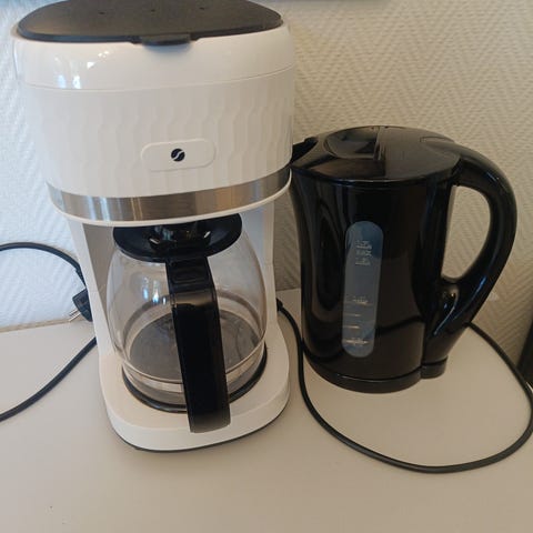 Merkkilaitteita vaikka ensimmäiseen omaan kotiin. Philipsin Aroma kahvinkeitin jossa säädettävä aroma-ominaisuus. Tämä ainoa missä sanomista, hopeinen ulkopuoli kupruilee, ei vaikuta käyttöön eikä viitsi pois heittää kun oli tosi kallis ja tekee todella hyvää kahvia ja toimii moitteetta. Leivänpaahtimeen menee kaksi leipää peräkkäin, murut voi poistaa alaosan murutaejottimen avulla. Moitteetta toimiva nätti vedenkeitin, kiva malli. Kaikki kerralla yhteishintaan. Laitetaan kaupan päälle muuta keittiötarviketta, mm. Pari metallista vispilää.