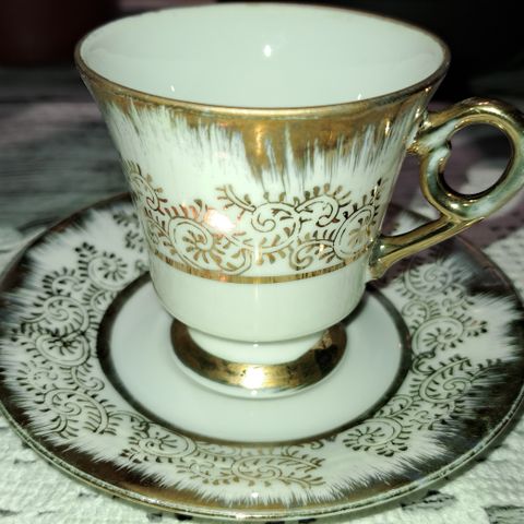 Krakeloitumaa. Tassissa jotakin ”kuplia”.