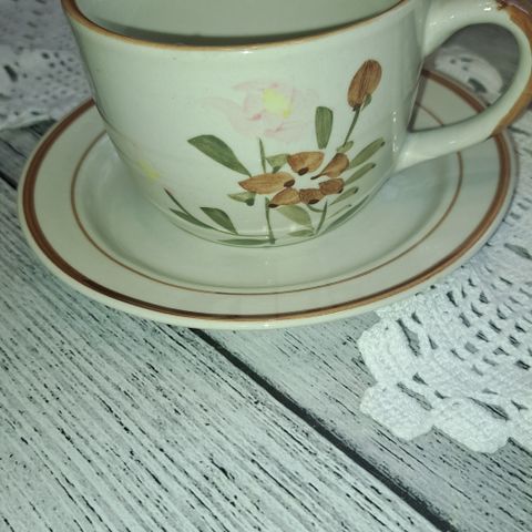 Vintage kaunis oranssi / kukka - perhonen japanilainen kuppi ja tassi yhteishintaan 5 e