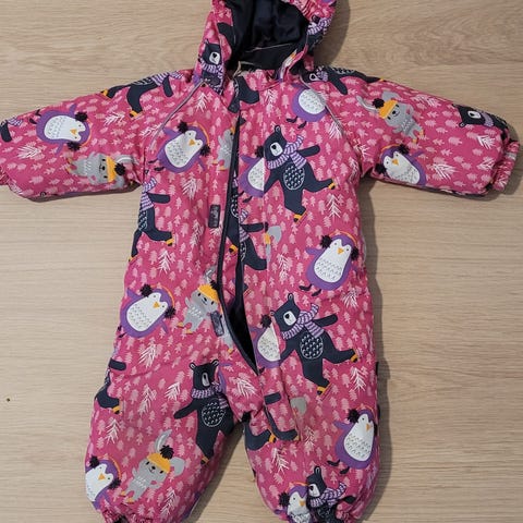 Kuvaus: H&M:n talvihaalari, koko 80. Käytetty vain 1 vuosi, lähes uudenveroinen. Haalarin sisällä on pehmeä ja lämmin fleecevuori, joka pitää lapsen lämpimänä talvella. Hupussa on myös pehmeä karvareunus.