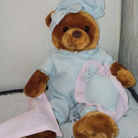 Uusi vanulla täytetty pehmokaveri.Koko korkeus 34cm ilman jalka-osuutta,leveys 24 cm.