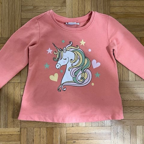Myydään hyväkuntoinen vaaleansininen heppa-aiheinen collegepaita, koko 90.