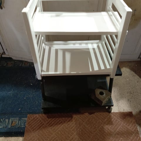 Lasiovilla oleva hyllystö. Näitä on 3 kappaletta, jotka voi yhdistää puutapeilla yhdeksi kokonaisuudeksi.
