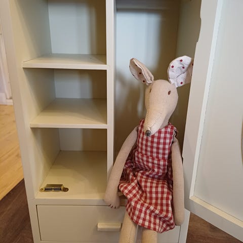 Ihana Maileg vaatetekki plus yksi henkari. Lev. 23, kork. 35cm.