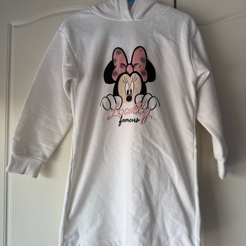 H&M:n Minni-huppari, jossa hupussa rusetti ja korvat, koko 110/116. Painokuvassa pieniä halkeamia Minnin mekon palloissa, ei juurikaan erotu. Muuten siisti ja ehjä.