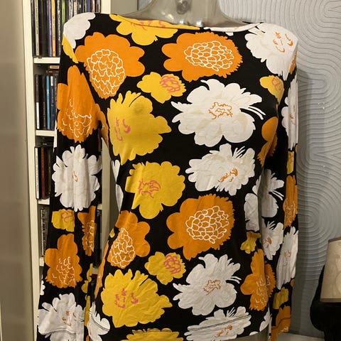 Muutaman kerran pidetty, erittäin hyväkuntoinen Marimekon trikoopaita. Koko S. Venepääntie. Ihan vähän nukkaa kainaloissa, joka lähtee nukkaimurilla tai nyppimällä.
