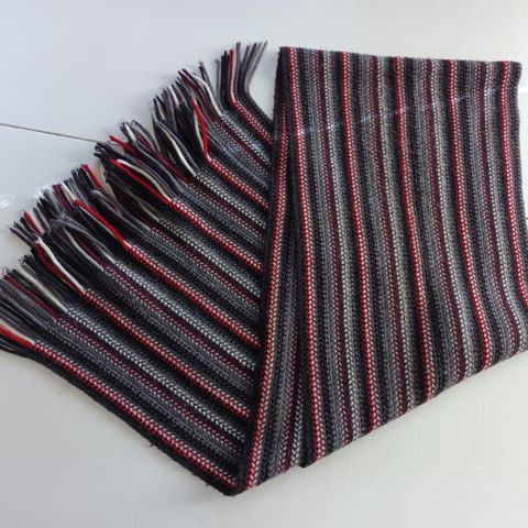 Ruudullinen kaulaliina, mustaa, harmaata, punaista, koko 30 x 148 cm +hapsut päissä. Tämän saa kaupanpäälliseksi, jos ostaa muuta.