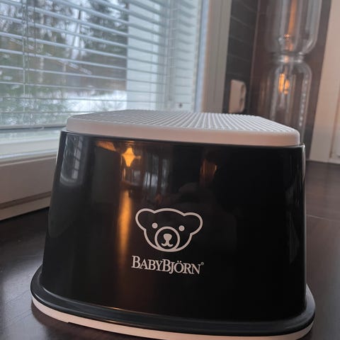 Ethän tingi kiitos. Baby Björn sinipunainen korokejakkara lapselle. Samanlainen kelta-vaaleanvihreä koroke myös myynnissä. Kappalehinta.