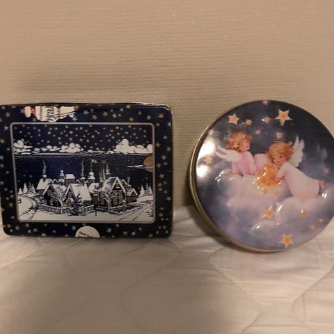 Kaksi metallista rasiaa. Mitat 12×8 ja 14×9