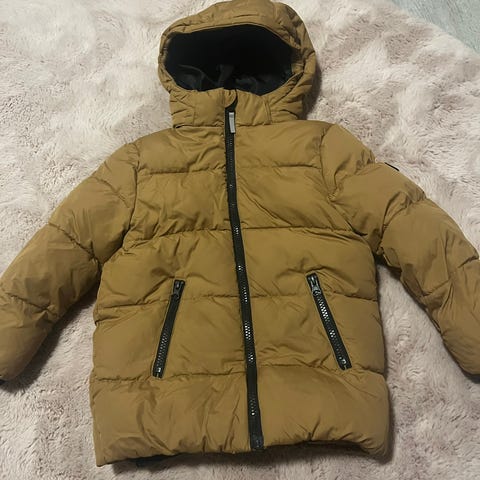 104 KappAhl musta toppatakki, kuva hieman valotettu, että takki näkyy paremmin. Kunto on hyvä. Resorit helmassa ja hihoissa. Hupussa irroitettava karva. Selässä lepakko heijastin.