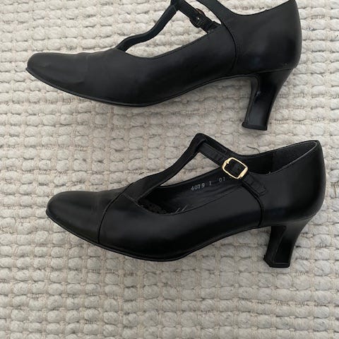 Solena mustat nahkaiset vintage korkokengät, koko 5,5 (vastaa kokoa 38-39). Korkojen takaosassa käytönjälkiä, kts. kuvat.
