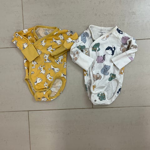 POPin bodyt, toinen kietaisumallinen. Paljon käytetyt, eli eivät enää uutta vastaavassa kunnossa. Ihan siistit kuitenkin vielä. Vihreässä käännettävät hihansuut.