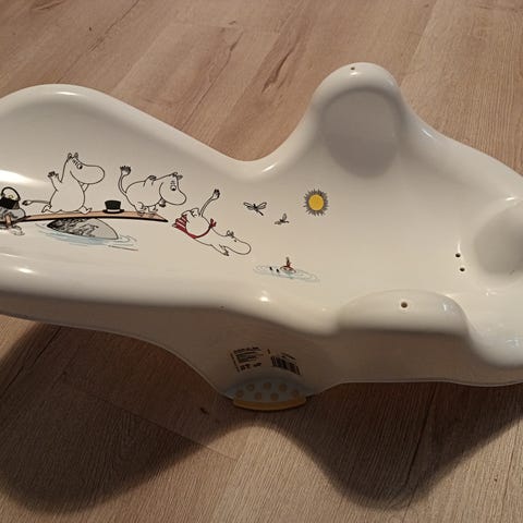 Hyvässä kunnossa oleva muumin kylpytuki.