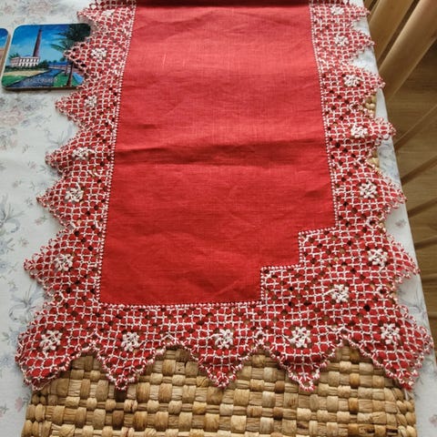 Siististi käsityönä valmistettu. Pohjaväri vaalea keltainen