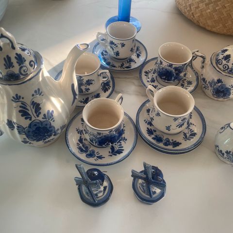 Hollantilainen Delft Blauw munakupit ja teline.