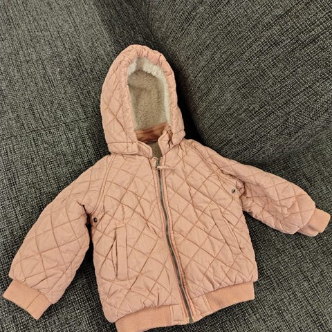 Myydään pinkki toppatakki koossa 86. Takki yleisilmeeltään siisti, mutta edessä alhaalla muutama tahratäplä. Vetoketjun alaosassa hieman rispaantunut kohta, mutta ei vaikuta toimintaan, huomioitu hinnassa 😊