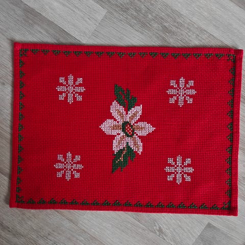 Kaksi pientä käsin virkattua jouluista liinaa