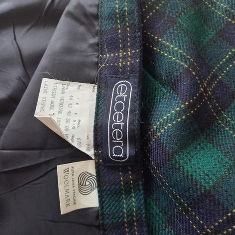 Vuorillinen hame, koko noin 38. Tuotteessa ilmoitettu kooksi 42, mikä ei pidä paikkaansa Suomen mittataulukoissa.