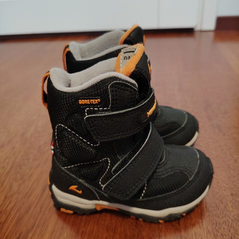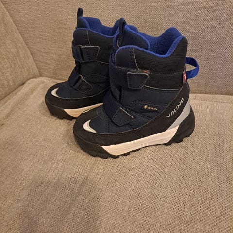 Viking talvi goretex kengät. Uutena meille ostettu, kahden lapsen käyttämät. Pintalikaa kahdessa kohdassa, näkyy kuvissa, puhdistan.