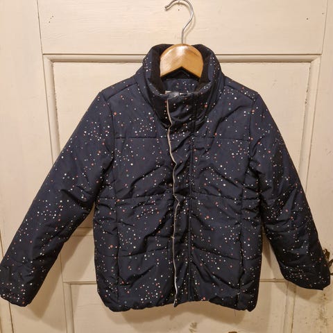 Pop toppatakki koko 110 cm. Todella siisti käytetty, mutta vetoketju välillä reistailee (joskus jumittaa tai meinaa lähteä väärälle uralle, joskus menee siististi/normaalisti kiinni).