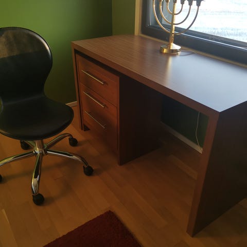 Naarmuton pöytälevy mutta sivuvalo ikkunasta tekee kohteen väritykselle "tepposet". Laatikoston lukonavaimet tallessa. Kuljetus lähialueelle mahdollista.