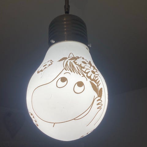 Muurlan Muumit elävät lasissa, muumilaakso aiheinen kattovalaisin.