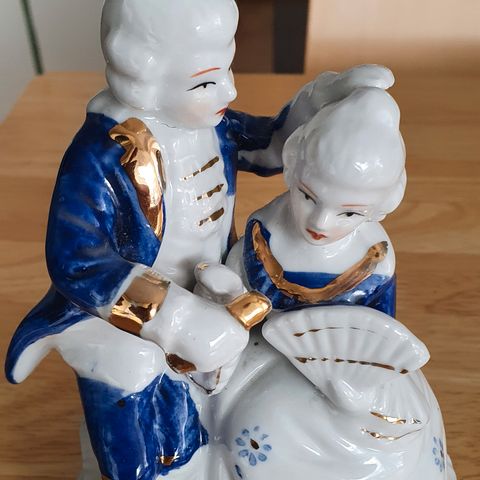 Posliini tyttöpatsas, jossa hahmolla on mekko ja kädessään kukkia. Patsaan väritys on pääosin ruskea ja valkoinen, yksityiskohtina vaaleita ja tummempia ruskean sävyjä. Hahmon vieressä on aita ja pieni lintu, ja patsas seisoo nurmikkoa muistuttavalla alustalla. Sopii esimerkiksi sisustusesineeksi hyllylle tai vitriiniin. Kork 15 cm, lev 10 cm.