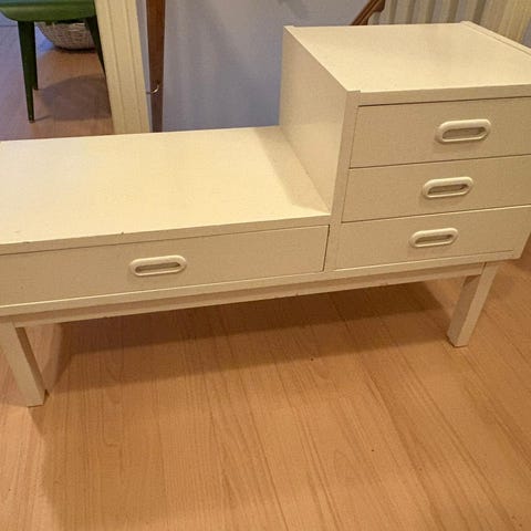 Pieni vankka neliömalli lipasto maitolasivetolaatikot kiskoilla ja siisti
