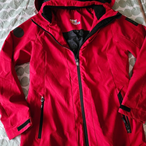 Rukan hyvässä ja siistissä kunnossa oleva kevyttoppatakki. Takissa on irroitettava ja useilla tavoilla säädettävä huppu, myös hihoissa ja takin helmassa säätömahdollisuudet. Hihoissa heijastimet. Vetoketjulliset taskut ulkopuolella ja yksi vetoketjullinen tasku takin sisällä.