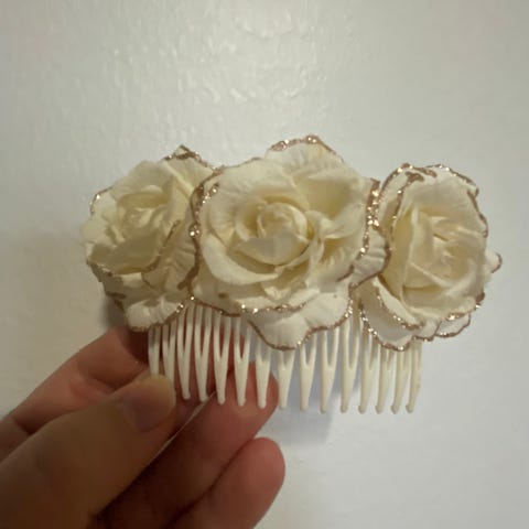Myydään Ur&Pennin hiuskoriste: keltaisia ja sinisiä paperikukkia nahkanauhassa.