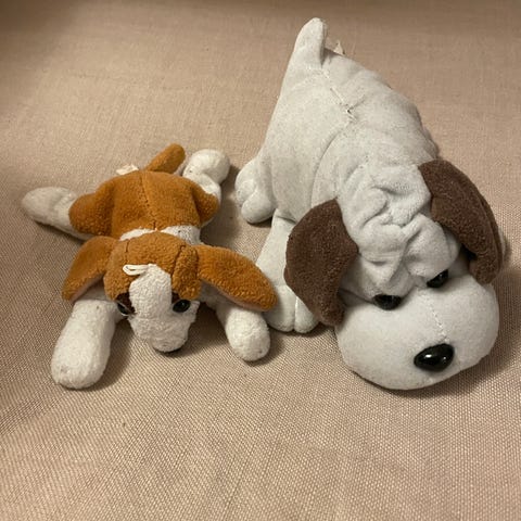 Kaksi pientä vaaleaa koiralelua