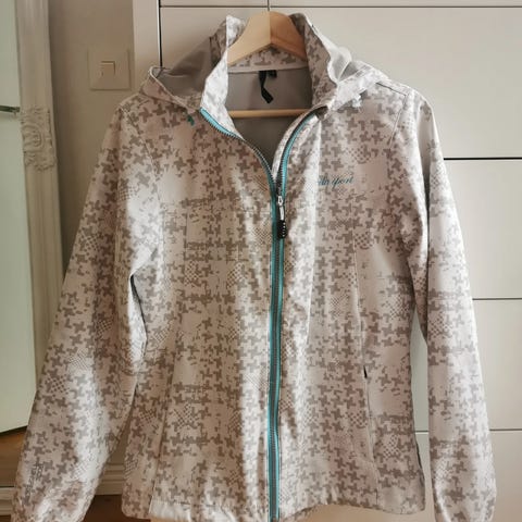 Hyväkuntoinen takki. Ei huppua. Edessä 2 vetoketjutaskua. Vasemmassa hihassa vetoketjutasku. Edessä olevan taskun vetoketjun vieressä vähän kulumaa. Kyljissä vetoketjulla olevat tuuletusaukot.
