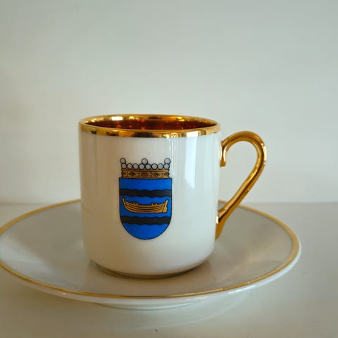 Pronssi pienoistuhkakuppi, korkeus 3 cm, halkaisija 5,5 cm.