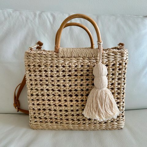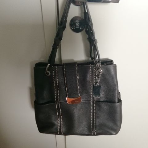 Uudenveroinen käsilaukku. Mitat: Leveys 32cm, korkeus 26cm ja syvyys 17cm.