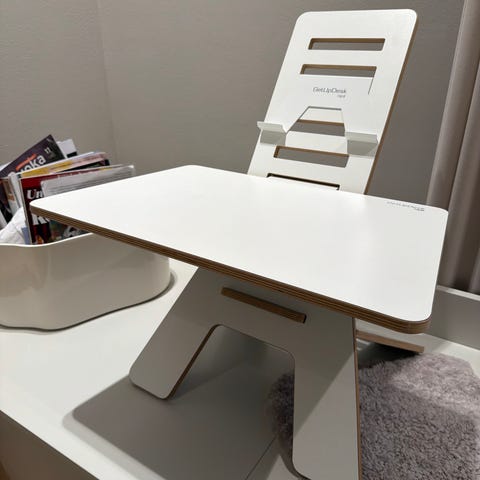 Muutaman kerran käytössä ollut säädettävä pöytätaso- Get up desk. Mahdollistaa ergonomisen työskentelyn seisten. 8 eri korkeutta. Erittäin helppo käyttää. Suomalaista laatua.