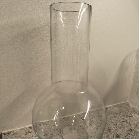 Lasimaljakko, jonka pohja neliön mallinen ja suu pyöreä. Korkeus 18cm.