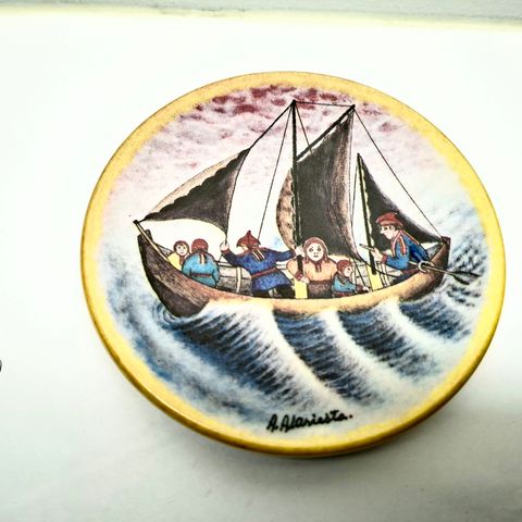 Arabia seinälautanen Andreas Alariesto vuodelta 1986. Numero 31 Purjevene. Halkaisija n. 12cm. Kunto moitteeton. Nouto Saimaanharjulta 10km Lappeenrannasta. Voin postittaa mutta postikulut sinulle