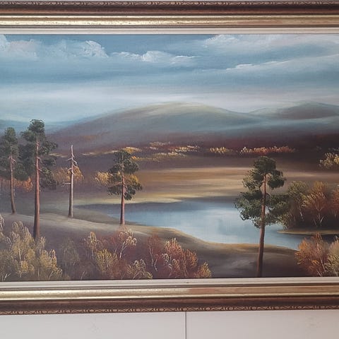 Iso vanha maisemataulu. Kuvassa Vanha maatila. Koko 113 x 83 cm kehyksien kanssa. Tuonti Kuopioon ja Siilinjärvelle mahdollinen.