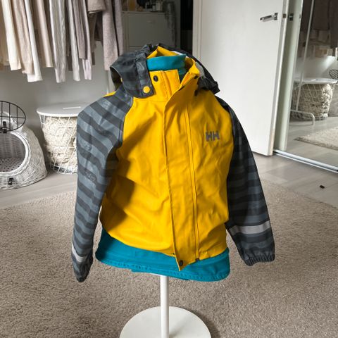Myydään keltainen Helly Hansen sadetakki. Takissa on heijastimet, irroitettava huppu ja vetoketju.