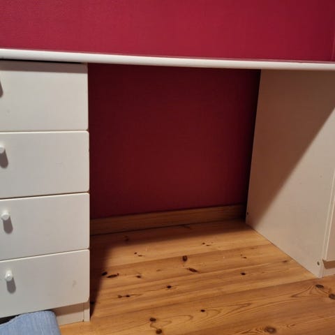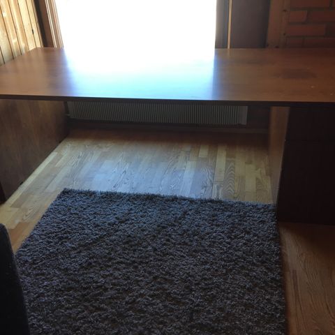 Pöydän alaosassa on reilusti säilytystilaa pariovilla ja vetolaatikko.