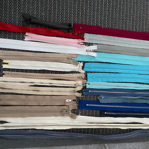 Myydään yhtenä settinä kuvissa näkyvät vetoketjut, yhteensä 91kpl.