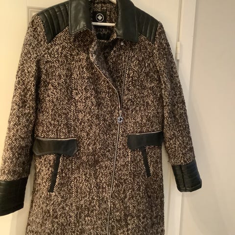 Comptoir des cotonniersin kaunis kalanruoto villaparka, musta-ruskea kuosi. Tweed.