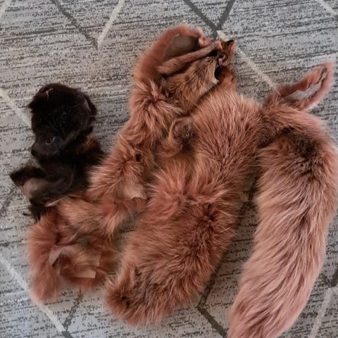 Turkin tuunauksesta yli jääneitä turkispaloja. Isoimmat n. 30 cm x 20 cm. Muovikassillisen verran yhteensä.